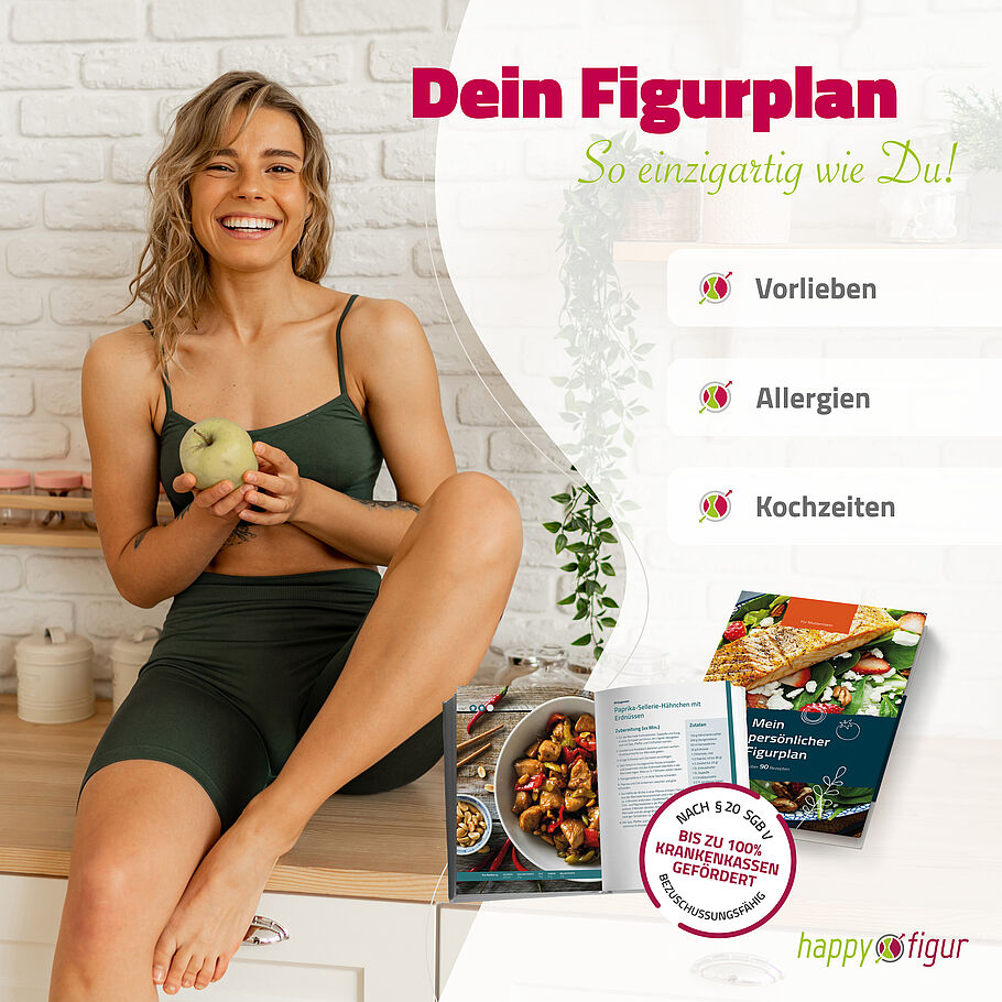 Mit dem „happy figur“ Ernährungskurs können Sie in 8 Wochen nicht nur Ihr Gewicht reduzieren, sondern gleichzeitig dauerhaft Ihre Gesundheit verbessern. Nutzen Sie diese einmalige Gelegenheit und lassen Sie sich von uns auf Ihrem Weg zu einem gesünderen Lebensstil unterstützen.